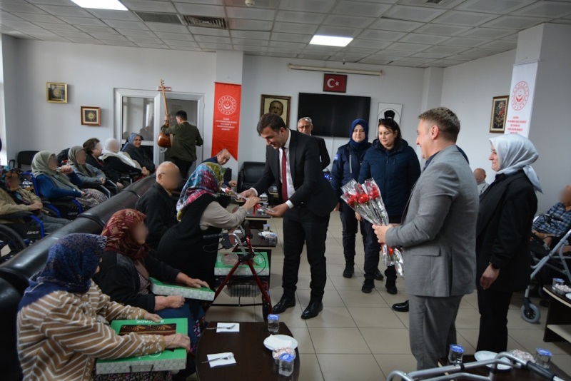 Konuşma sonrasında yaşlılarımızla beraber sazların çalındığı, türkülerin söylendiği bu ziyaretimiz personelimizin getirmiş olduğu karanfillerin dağıtımı ile kurumumuzda üretimi sağlanan seccadeler hediye edilerek ziyaretimiz tamamlandı.